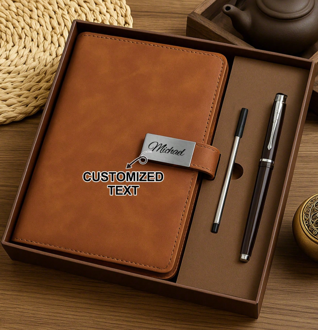 Skep iets besonders vir jouself of ’n geliefde met hierdie A5 gepersonaliseerde leerjoernaalstel. Hierdie elegante stel sluit ’n hoëgehalte joernaal, ’n netjiese notaboek en ’n stylvolle pen in – en jy kan dit volledig personaliseer met ’n naam of inisial. Perfek as ’n geskenk of vir jou eie professionele gebruik.